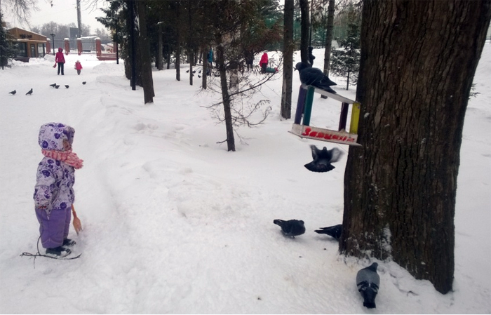 Еще одно хорошее место для знакомства с зимней природой. Здесь тоже живописные ели, кормушки для белок и птиц, стаи голубей, готовых брать хлеб едва ли не из рук.