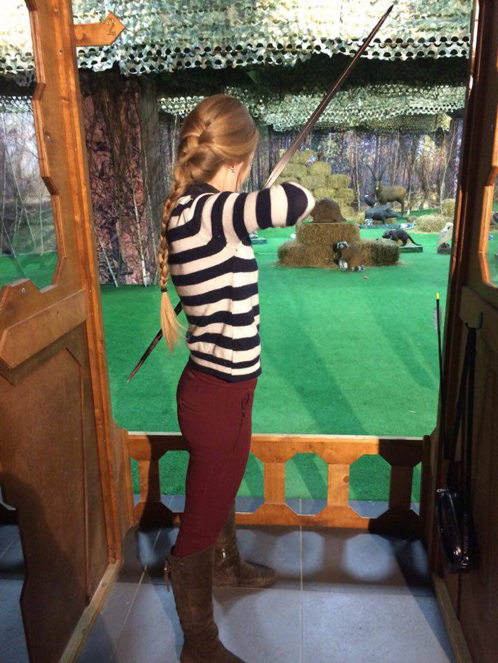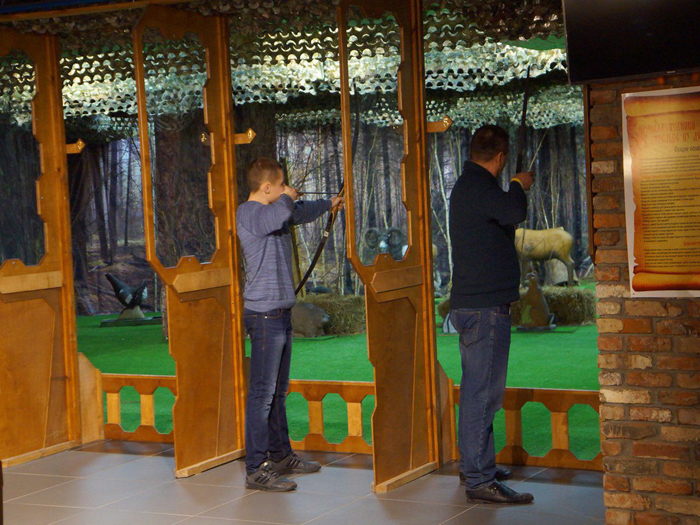 Именно в «Олимпе» я впервые попробовала стрельбу из лука и арбалета. Последнее орудие более-менее привычно, напоминает модифицированную винтовку, прицел такой же, сложность только с тяжелым перезарядом. Но лук – совершенно другие ощущения.Сколько характера и благородства в этом оружии! Натягивая тетиву, ощущаешь себя минимум средневековым воином, максимум - эльфом из «Властелина колец». Прицела в луке нет, нужно максимально сосредоточиться на мишени, подключить глазомер или интуицию, точнее не поняла, так как в большинстве выстрелов промазывала. Мишени, нужно сказать, тут как настоящие – крупные животные, мелкие грызуны, птицы, все это в декорациях природного ландшафта, выглядит очень реалистично.
