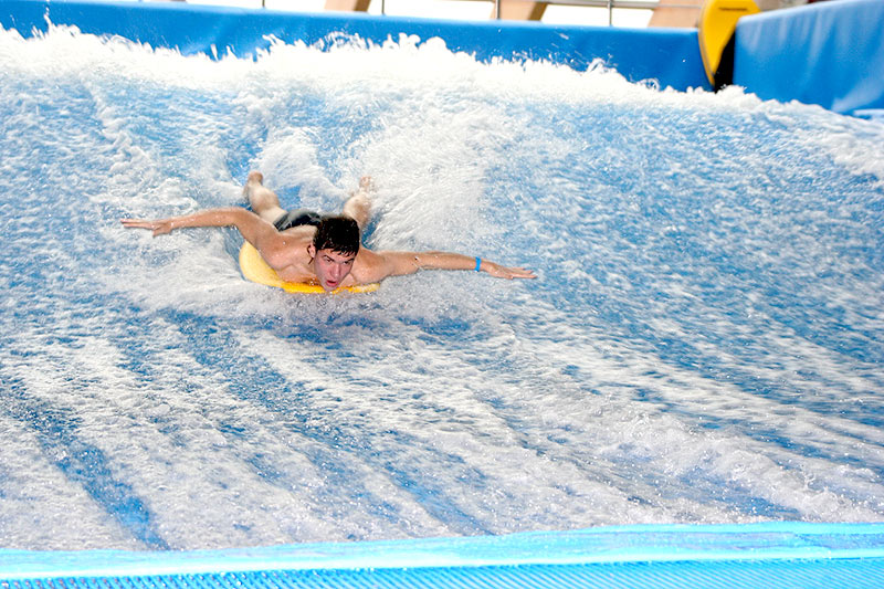 Другое дело серфинг, это я умею, подумала, уверенно зашагав в сторону очередного аттракциона. Он представляет собой выгнутый подиум с искусственной волной. Встаешь на вершине и пытаешься удержаться на доске, сначала на коленках, а потом пробуешь встать. И сделать это не так-то легко, даже если вы раньше покоряли настоящий океан. Разница в сильном искусственном напоре воды, к которому нужно привыкнуть. Ну и здесь не нужно выжидать приближения волн, грести, набирая скорость. Получается, что вы тренируете только чувство равновесия, с чем этот аттракцион прекрасно справляется.
