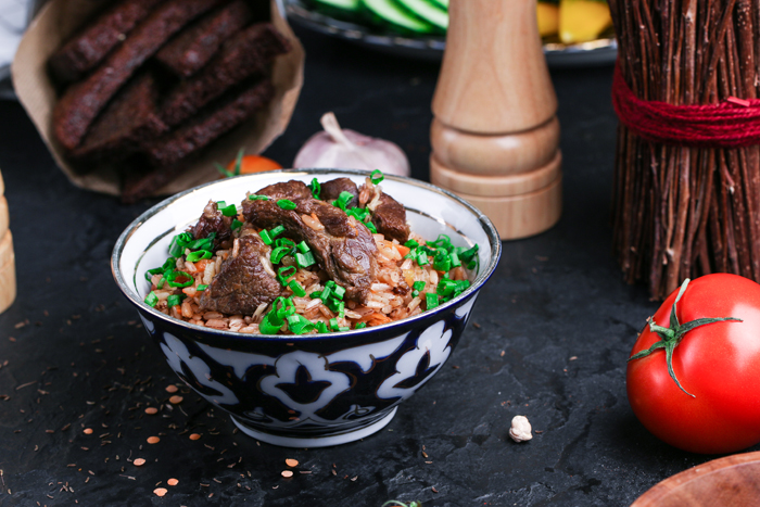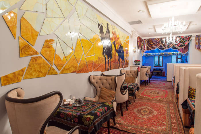 Место в современном восточном стиле с коврами и мягкими диванами. Отличный выбор для тех, кто любит восточную кухню. Все подается в соответствующей посуде: пиалы, коса, чашечки в виде больших рюмок. Еда приготовлена по всем канонам восточной кулинарии, однако при этом не отличается чрезмерной жирностью и маслянистостью. Коронное блюдо, в честь которого, видимо, и названо заведение – плов – заслуживает вашего внимания и вашего заказа. Он очень сытный, интересный по вкусу из-за правильно подобранных специй и невероятно нежный благодаря мягкому, тающему во рту мясу.