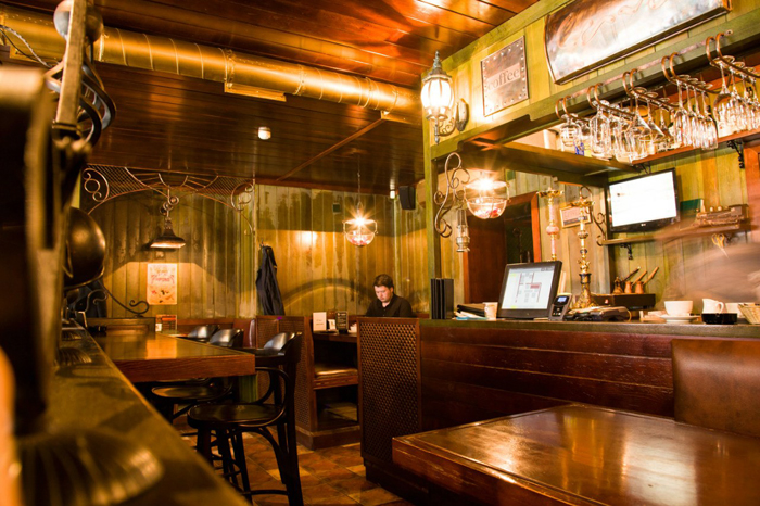 Еще одно мое любимое место. Сюда мне нравилось приходить во время «окон» между парами в студенческие годы. Темный, но приятный и стильный интерьер, создающий ощущение, что ты сидишь в старом кафе с обшарпанными стенами (в одном зале) или в вагоне поезда прошлых веков (в другом зале). Идеальное место для одиночек - это, конечно же, маленький столик у окна (здесь можно проводить аналогию с шуточками из социальных сетей о том, как одинокие девушки грустят, глядя в окно).