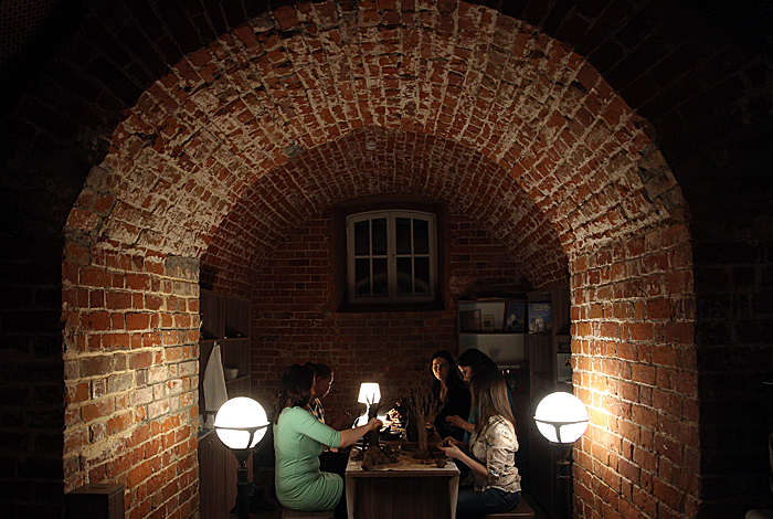 Центр «Азбука» находится по адресу Япеева, 2. Водитель такси без труда нашел нужный адрес и высадил меня возле… церкви Сергия Радонежского. Отремонтированной, но пока не открытой. Хорошо, что у здания меня встретила Евгения Иванова, ведущая занятия. С ней и другими участницами мы прошли в подвал со сводчатыми низкими потолками из красного кирпича позапрошлого столетия. Атмосферно.