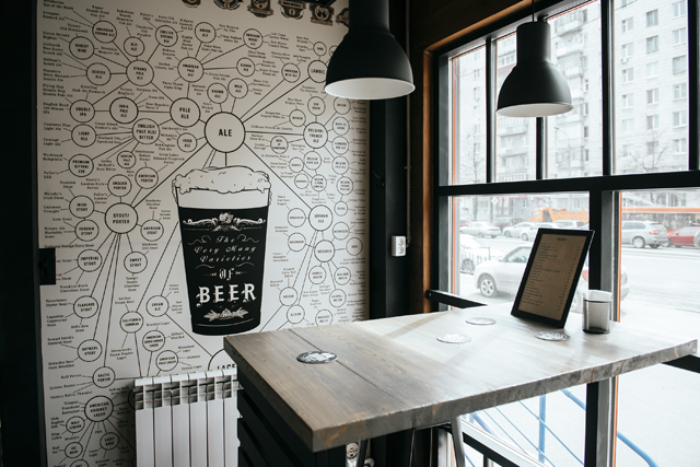 При посещении этого места у вас полностью меняется представление о пивном заведении: нет посторонних запахов, очень светло и уютно. Мы обнаружили около 18 видов разливного крафтового пива на кранах из разных стран, которые, кстати, меняются от сезона к сезону. Есть «Founders», «Plan B», «Яблочный Спас», «Schneider», «AF Brewery», «Del Ducato», «Zagovor Brewery», «Бакунин» и много другого, а бутылочного крафта здесь просто не перечесть.