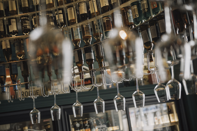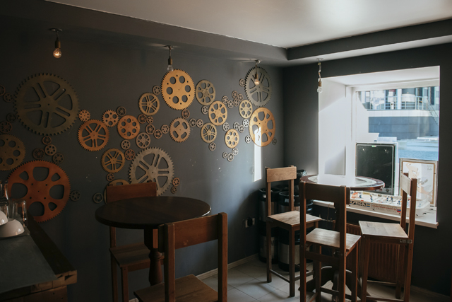 Интерьер заведения выполнен в нетрадиционном для бара стиле: белые стены, много света — за счёт больших панорамных окон. Кроме этого, много натурального дерева, из которого выполнены столы, барная стойка и стены бара.