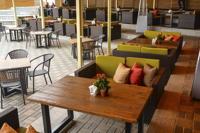 На летней веранде «Ромэйн» понравится тем, кто любит мясо, много мяса. Летник стейк-хауса – это такая лайтовая версия настоящей вылазки на шашлыки для вечнозанятых городских жителей. Только с тем отличием, что больше комфорта, не кусают комары и мясо вы готовите не сами. С последним здесь кстати, все хорошо – мой стейк был в меру прожарен, соус на выбор был хорош, но порции маленькие, хотелось бы побольше.