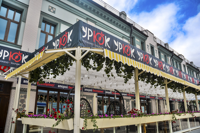 На самую большую веранду на Баумана – заведение крупного ресторанного проекта «Uryuk.me» – я предпочитаю ходить в большой компании. Тем более, что кухня в «Урюк» на любой вкус: грузинская, узбекская, паназиатская и европейская. Я заказывала чебуреки – в меру пышные, горячие (чувствуется, что только что из печки, никаких заморозок!) и шашлык из баранины. Особенно покорило название «Горячие семечки» – чувствуется, что за нейминг здесь отвечают люди с чувством юмора. Здесь достаточно уютно, несмотря на то, что веранда находится в многолюдной части главной пешеходной улицы Казани.