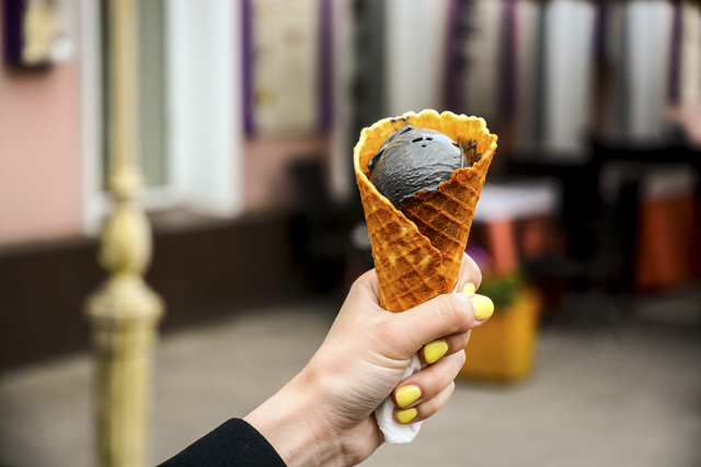 С кафе «Сказка» у меня, как и у многих казанцев, связаны, прежде всего, воспоминания из детства. Поход в это заведение – как телепорт в девяностые и двухтысячные (в хорошем смысле этого слова): практически самое вкусное мороженое в городе – казанский вариант настоящего gelato. Я купила себе чёрного цвета (красиво для фото), вкус – обычный сливочный. Как гласит реклама, мороженое в «Сказке» готовят настоящие айс-мейкеры. Я конечно, не знаю, кто это, но, видимо, кто-то очень крутой. В «Сказке» подают вкусную татарскую выпечку, почти как у абики в деревне. Кафе в первую очередь позиционирует себя как детское, поэтому во второй раз приду сюда с племянницей.