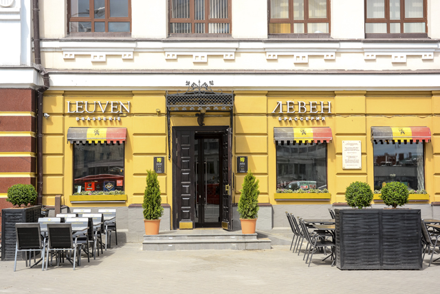 Первой на пути попадается бельгийская брассерия «Leuven». Здесь ещё не поставили столики и диваны, но по памяти прошлых лет веранда обещает быть самой большой на Баумана. Мне в «Leuven» всегда кажется, что я наконец-то выбралась и приехала к подруге в Бельгию: почти как настоящие бельгийские вафли, традиционный луковый суп, блюда из кролика, очень много сортов пива. Говорят, что меню прорабатывали вместе с французскими и бельгийскими поварами – для большей аутентичности блюд. Обслуживание – деликатное и быстрое. Окончательно летнюю веранду откроют, когда станет совсем тепло.