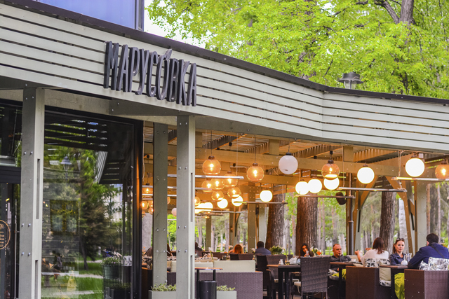 Тестировать заведение с громким слоганом «Бар. Еда. Тусовка» я шла, пожалуй, с самой большой надеждой. Летняя веранда «Марусовки»полностью оправдывает свое название: много воздуха, много света и растительности. Иногда мне казалось, что чай я пью не в центральной части Казани, а в саду: свои функции по созданию летнего интерьера выполняют интерьерные растения, плетёная мебель и перегородки, напомнившие мне садовые изгороди. По вечерам в «Марусовке» играет живая музыка.