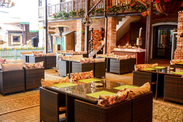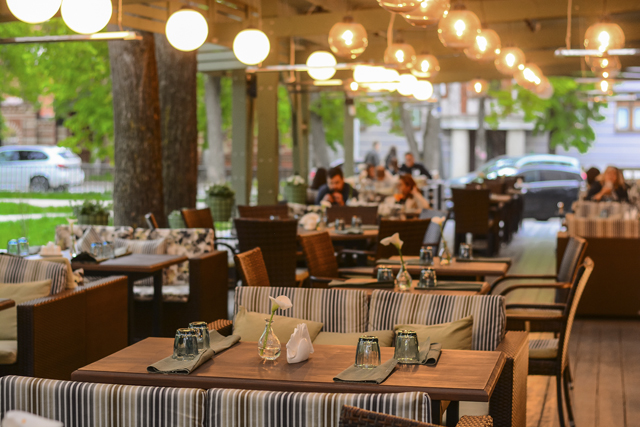 Летняя веранда ресторана «Пашмир» обустроена с восточной изысканностью: большие окна, мягкие подушки, ко всему добавляется вид на Старо-Татарскую Слободу. Сюда стоит приходить для того, чтобы попробовать блюда узбекской кухни – особенно все, в том числе и я, хвалят плов. Цены в ресторане выше среднего, учитывайте это перед походом.
