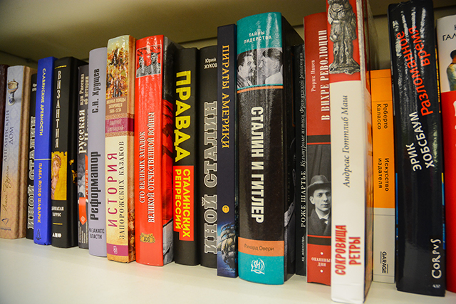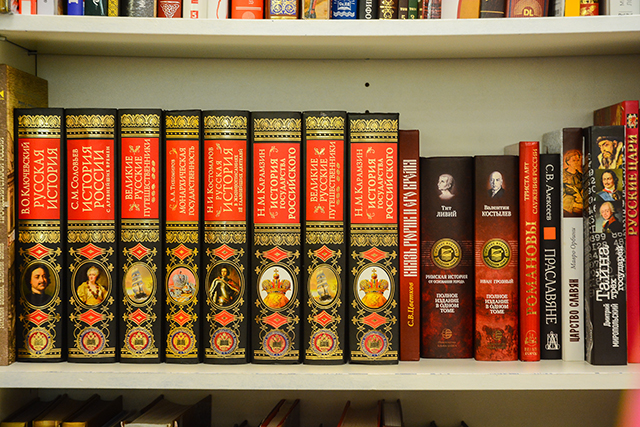 На стенде «Распродажа» представлена вечная классика: полное собрание сочинений Анны Ахматовой за 252 рубля, увесистые «Три царя» Эдварда Радзинского об Александре II, Николае II и Сталине за 575 рублей и малое собрание сочинений сестёр Бронте за 334 рубля.