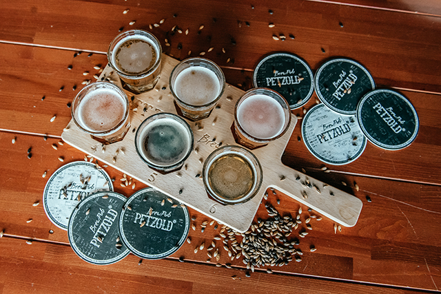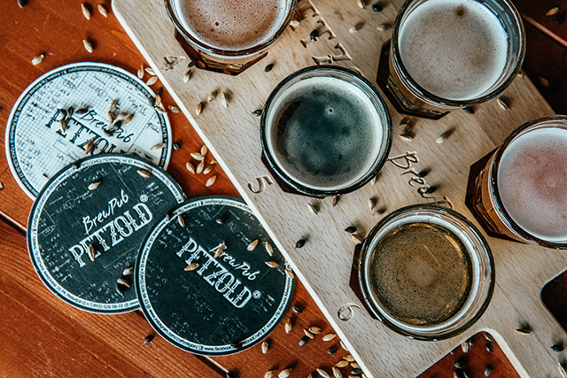 «В «Petzold» варят более 20 различных видов пива по своим рецептам, на кранах стоит около 6–8 сортов, которые постоянно обновляются. Можно взять дегустационную линейку из шести на пробу, она стоит 180 р.