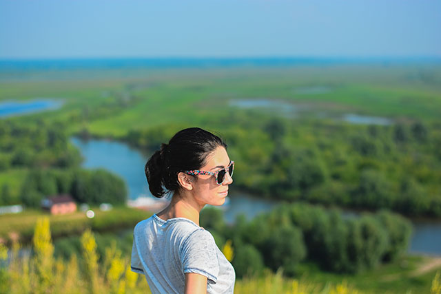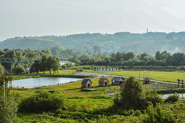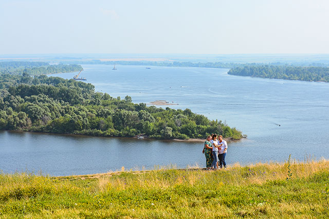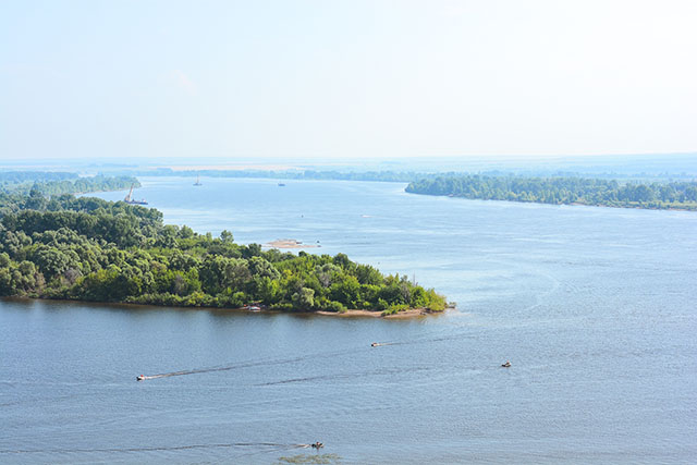 Второе, что сражает на этой возвышенности – вид на воду. Кама, испещрённая множеством протоков и островов, выглядит внушительно и прекрасно. Очень далеко в облаках и дымке теряется соседний промышленный город.