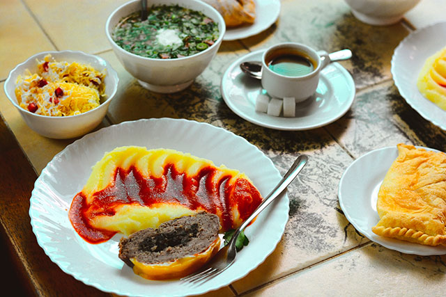 Эти видом можно насладиться и из ресторана, расположенного тут же. Он кажется несколько напыщенным и ооочень дорогим, но это обманчивое первое впечатление. Однако мы предпочитаем последовать примеру молодой семьи и расположиться прямо на траве под яблоней. Уют этих минут запоминается не меньше, чем восторг от вида.