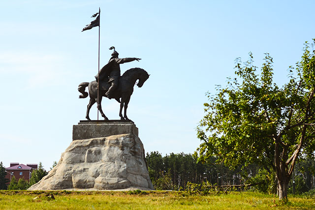 Спустя несколько попыток выход к Чёртовому городищу найти всё же удалось. Ориентировались мы на впечатляющую статую никто-не-помнит-какого-хана: он восседает на коне, взгляд устремлён за горизонт. Кажется, он пытается подглядеть за памятником Чингисхану в Монголии и замереть в той же позе.