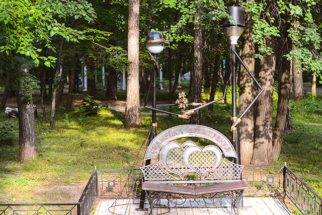 Александровский сад, несмотря на стойкую тень на дорожках, пруды и тихие разговоры отдыхающих, производил более умиротворённое впечатление. Резные деревянные скворечники и детские качели, уютные тропинки и любопытный парк влюблённых! Пройдя по одной аллее, можно познакомиться, влюбиться, пожениться и… помириться! Дизайнеры явно разбираются в цикличности человеческих отношений!