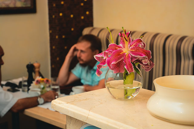 Кафе «Према» находится в уникальном центре саморазвития, где регулярно проходят всевозможные уроки танцев, мастер-классы, тренинги, семинары. Что интересно, на входе нужно обязательно снять обувь и надеть тапочки. Атмосфера заведения довольно приятная – большой и чистый зал с белыми столами и стульями, живыми цветами и спокойной музыкой.