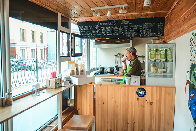 Ещё одно полностью веганское кафе в самом центре города – «Green Life». Маленькое, уютное и очень светлое заведение с приветливыми работниками. Благодаря его расположению, удобно забежать в него по пути на учёбу и захватить какой-нибудь смузи. Можно просто посидеть и не спеша перекусить, зарядив телефон с помощью устройств на солнечной энергии.