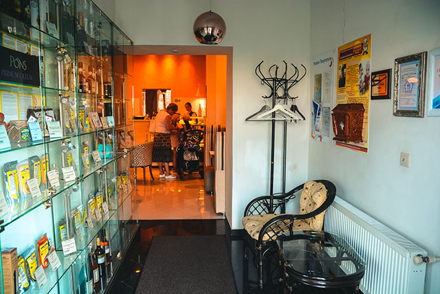 В соседней комнате стоят столики и кресла, а у стены – ещё один магазинчик с различными ореховыми пастами, цельнозерновой мукой, шоколадом ручной работы, соевым мясом и прочими полезными продуктами. Кстати говоря, совсем недавно в этой комнате сделали ремонт, и стало ещё уютнее.