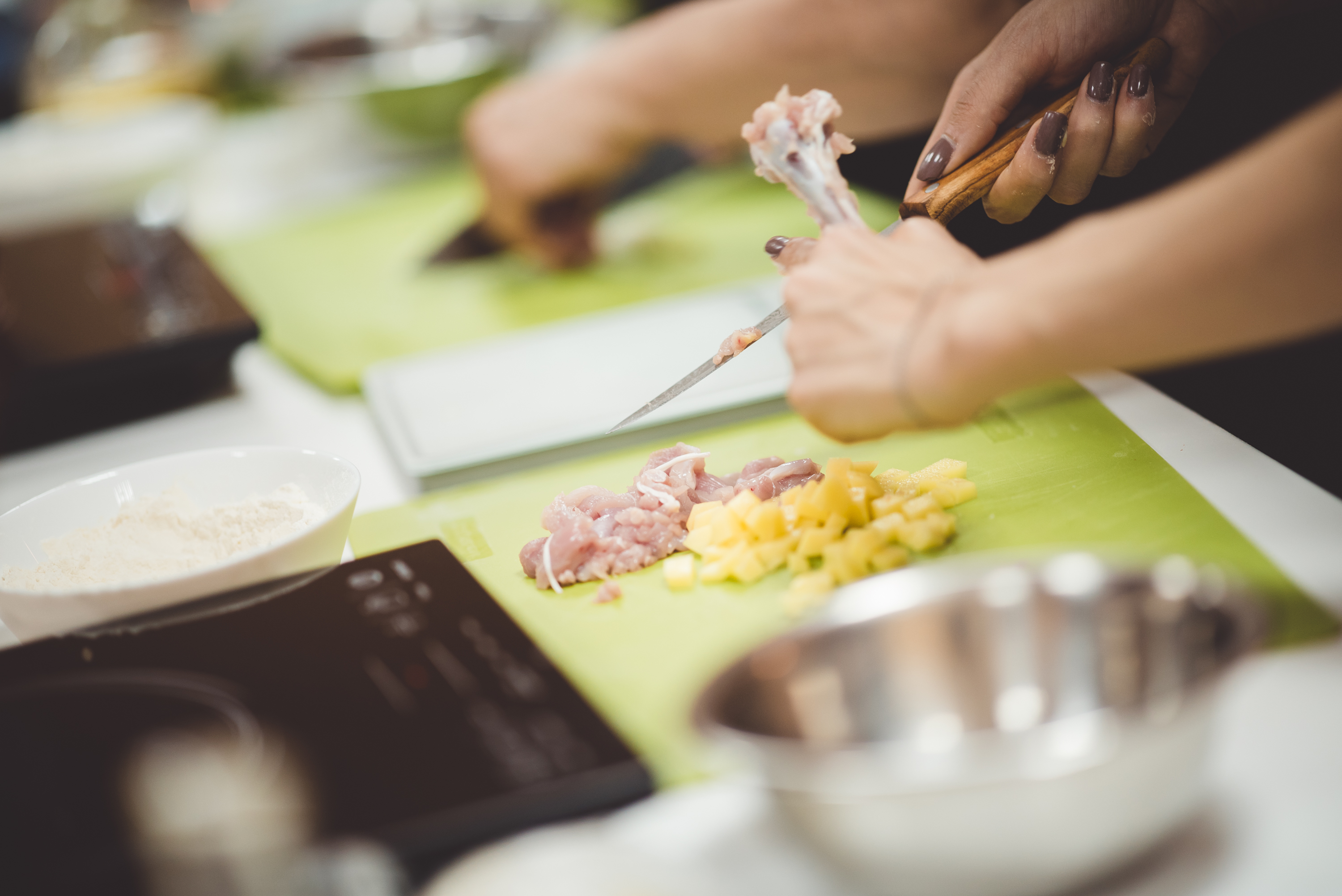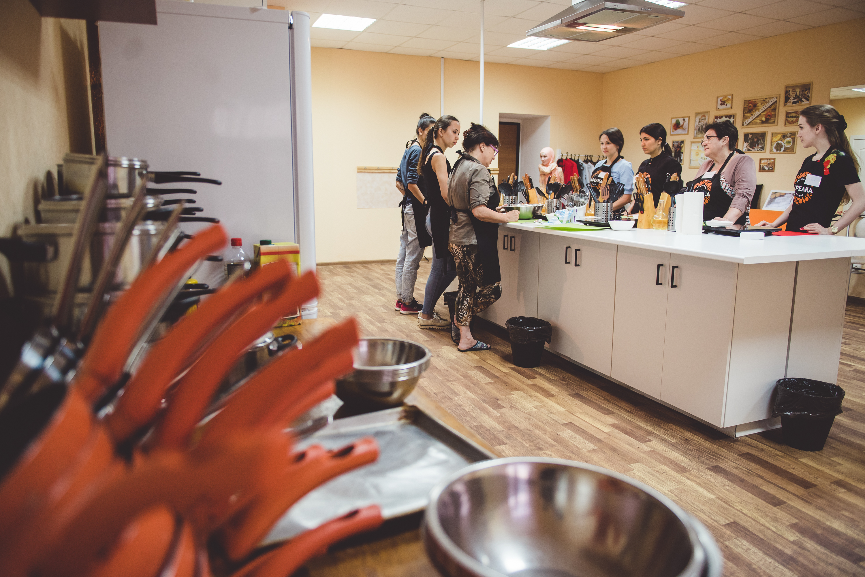 За рабочим столом напротив – другие ученицы студии. Старше и младше меня, опытные кулинары и начинающие любители. Все, как одна, хотят порадовать родных: родителей, мужей, женихов и детей. Шесть вдохновлённых хозяюшек в фирменных фартуках переминаются с ноги на ногу в ожидании начала, в последнюю минуту вбегает ещё одна участница прямиком из Ульяновска, и меня охватывает ощущение, что нас ждёт очень хороший вечер. И что их заинтересованные горящие глаза вдохновляют больше, чем ослепляющий свет софитов на любой кулинарной телепередаче.