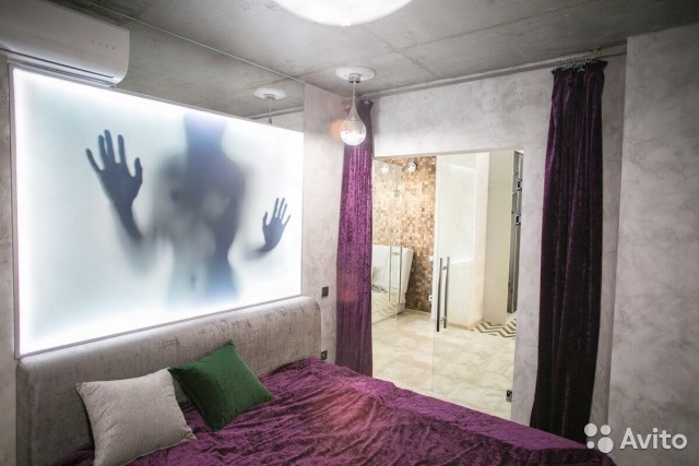 В такой квартире чувствуешь, что, наконец, нашёл рай на земле. На потолке небо и неплавающие облака, а под тобой белый диван. Дизайнер квартиры решил, что повидавший рай должен посмотреть и на ад, и потому в соседнюю комнату добавил кровать с огромным пушистым розовым пледом, а потолок раскрасил в красный.