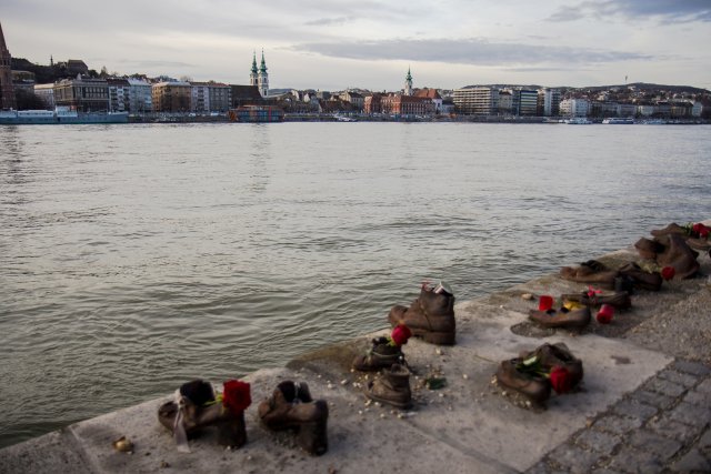 Немного в стороне от величественного здания Парламента на набережной Дуная можно найти самый пронзительный памятник – мемориал, посвященный жертвам Холокоста, «Туфли на набережной» (Cipők a Duna-parton). Массовые расстрелы евреев в Будапеште производились членами венгерской нацистской партии «Скрещённые стрелы» в конце Второй мировой войны.