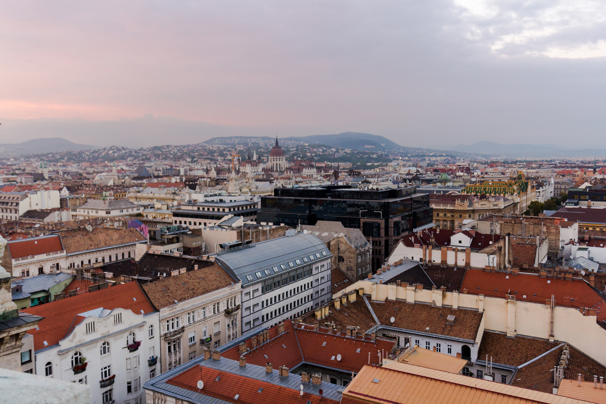 Мне повезло – я застала последний светлый час до сумерек. Этого хватило, чтобы последний раз окинуть взглядом панораму города, задержаться на изумрудно-зелёной яркой черепице крыши церкви Матьяша и вспомнить весь свой день, как в быстро прокручивающемся назад фильме – точно такую же черепицу я видела с утра на здании рынка (о, это знаменитая черепица фабрики Жолнаи!).