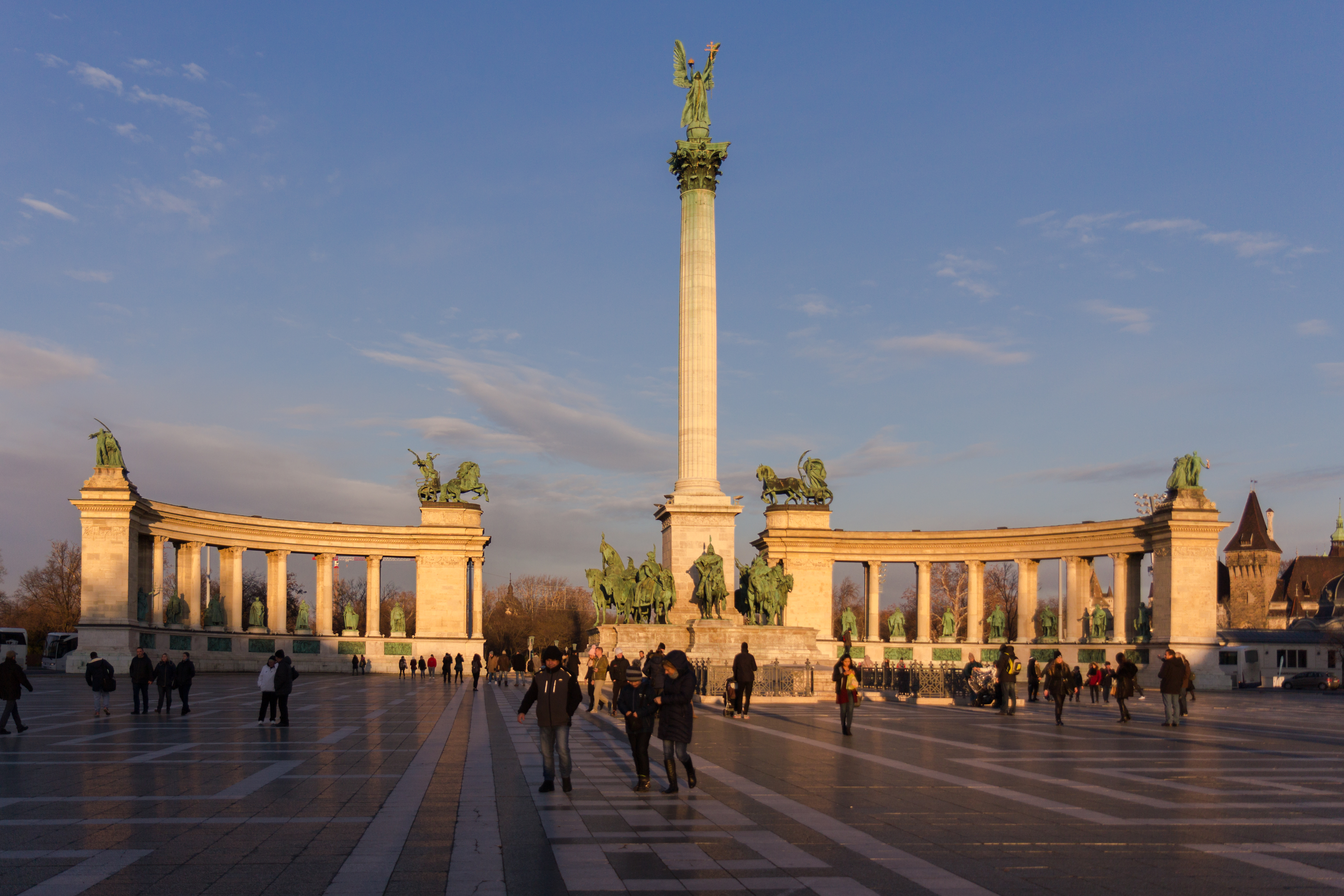 Меня с готовностью встречает Площадь Героев с высоченной колонной по центру (вот бы мне гелиокоптер) и архангелом Гавриилом на вершине.