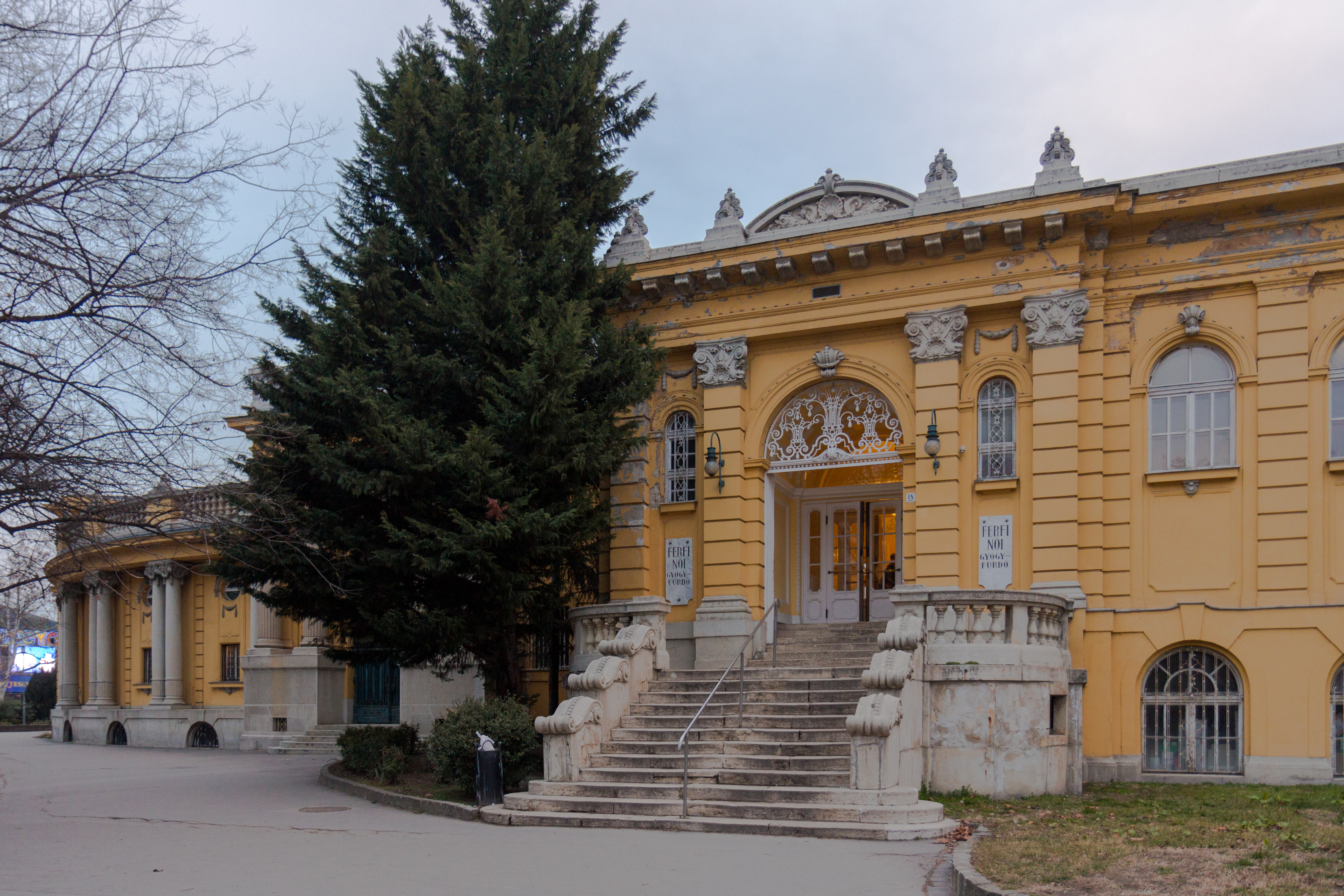 Купальни Сечении расположены в Городском парке Варошлигет (Városliget).