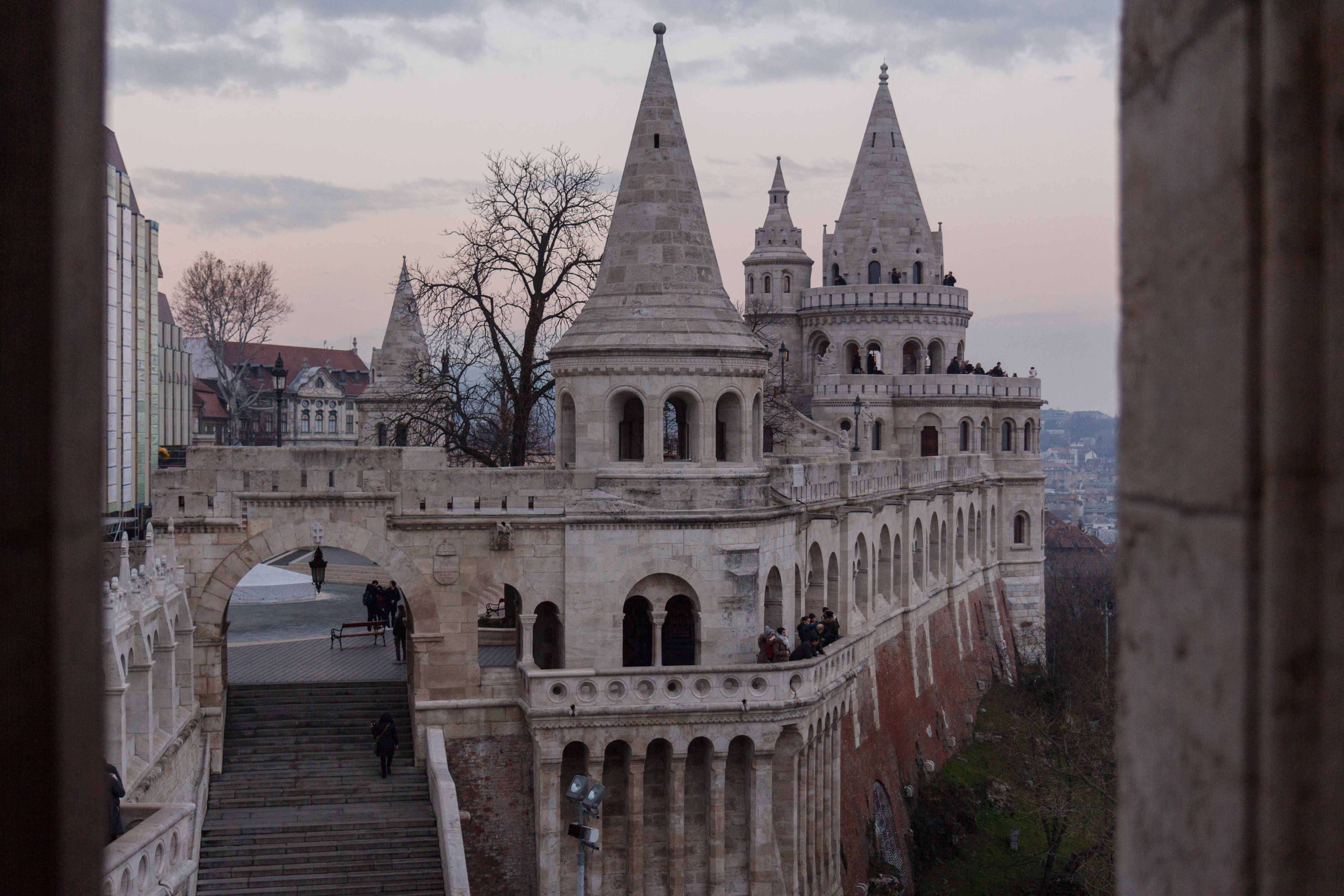 Здесь нужно: подняться на холм, на котором стоит старинный королевский дворец, посидеть на ступеньках Рыбацкого бастиона и потолкаться в толпе на галерее, любуясь панорамой города на Пешт, Дунай и мосты.