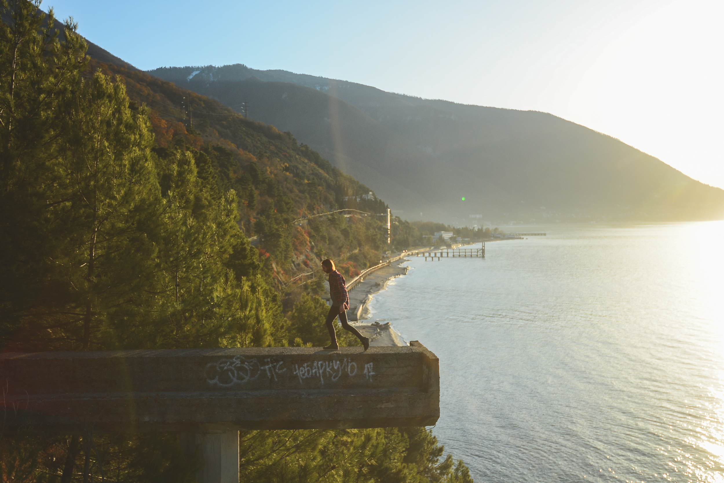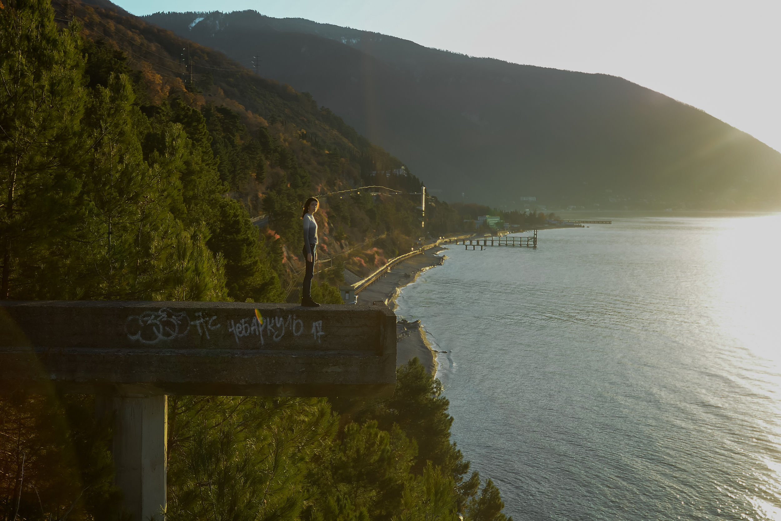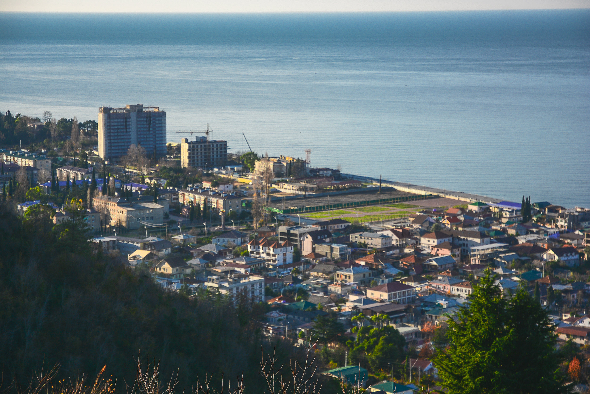 Солнце быстро высушило гальку на пляже и прогрело набережную. Выйдя с утра в пуховике, к полудню я осталась в рубашке и мучительно ползла вдоль набережной, нацелившись на Большой Сочи. Примерно через час с лишним мы осознали, что дорога эта бесконечная, а виды однотипные – отельные кварталы, туристические магазины и кафе, преимущественно закрытые не в сезон. И повернули в сторону Абхазии, которая оказалась ближе, чем ожидалось.