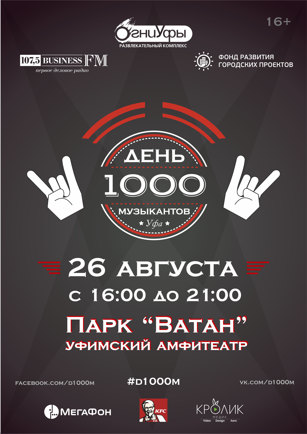 Напомним, что организаторами флешмоба «День 1000 музыкантов» выступают радиостанция Business FM Уфа, Фонд развития городских проектов и РК «Огни У