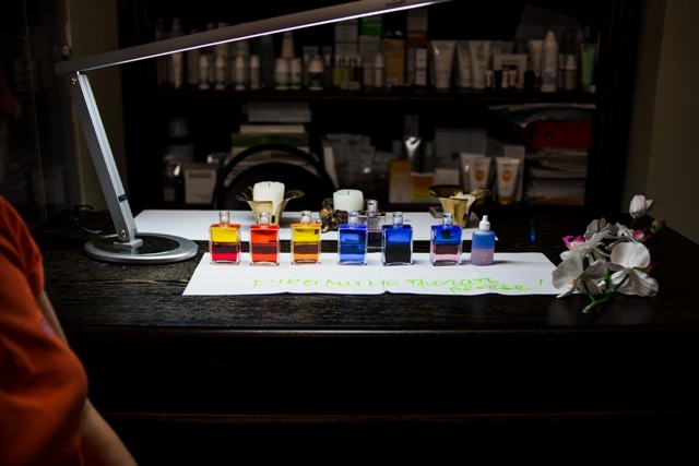 Помню, переступила порог «Слим Клуба», а дальше – как в хорошем сне. Ты садишься напротив нескольких цветных бутылочек. Сначала ничего не чувствуешь, просто смотришь, разглядываешь, присматриваешься... Через минуты три ты начинаешь замечать, что к некоторым цветам тебя прямо тянет, и вот на некоторые ты совсем не реагируешь, а от других не можешь оторвать свой взгляд. И смотришь ты… не то, чтобы просто смотришь, а ты впиваешься глазами в этот цвет, как будто это долгожданный стакан воды или порция любимой еды... То ли ты смотришь на бутылочку, то ли она на тебя.