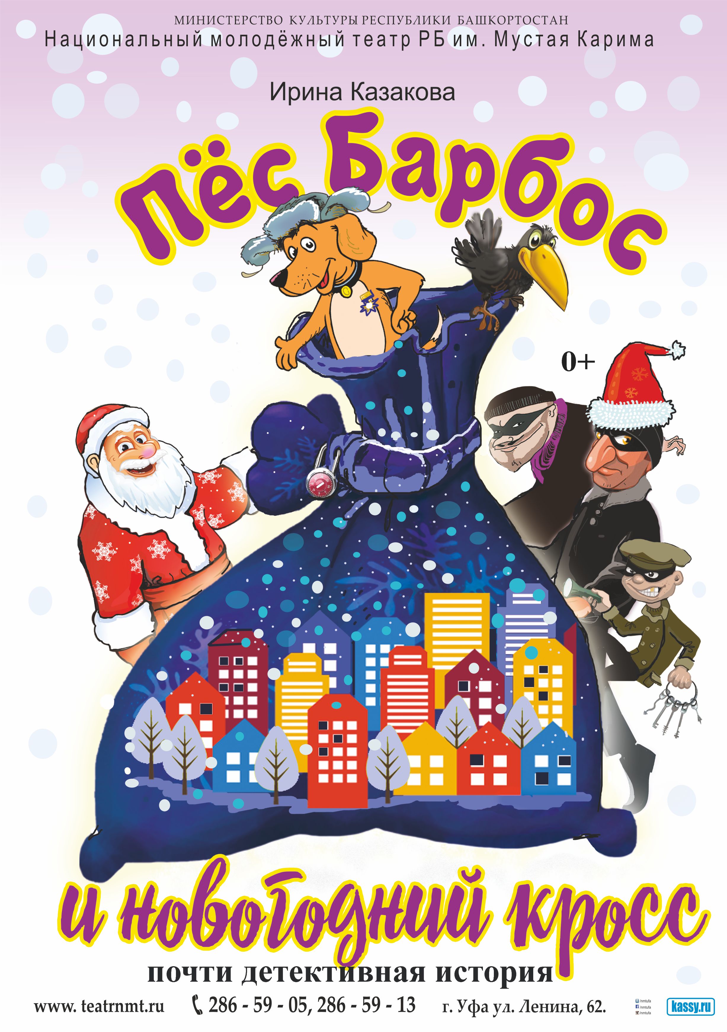 Интерактивная музыкальная сказка «Пёс Барбос и новогодний кросс» рассказывает о дворняге Барбосе, который мечтает стать следователем. Проявить себя в этом деле ему удаётся после тревожной новости: у Деда Мороза украли мешок с подарками. Вернуть пропажу пёс сможет только после того, как распутает клубок событий и преодолеет захватывающий и невероятный новогодний кросс.