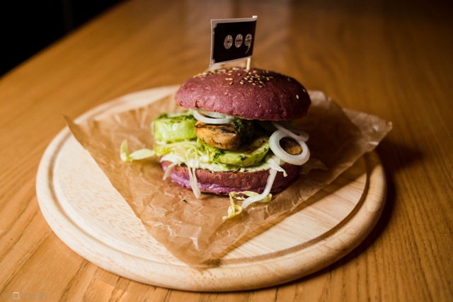 Самый бюджетный бургер в линейке, потому что вегетарианский. Друзья, я обожаю овощи на гриле, а здесь только они и есть: цукини, томаты, шампиньоны и сушеный чеснок, обжаренные на гриле до состояния альденте. Их поливают моим любимым песто и помещают в красную булочку. Прекрасная возможность для вегетаринца пообедать в приличном заведении, в котором не читают киртан.