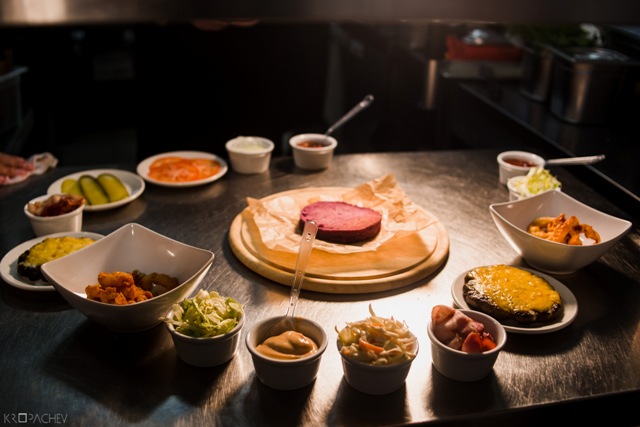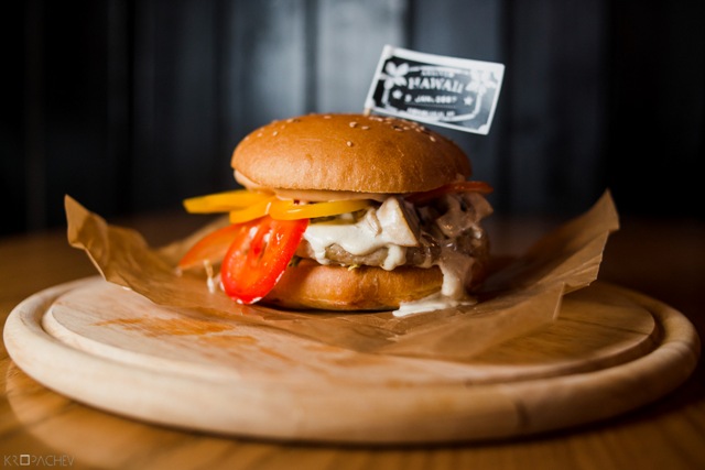 Самый понятный из всех бургеров. Салат, котлета, помидорки, овощной соус сальса, булка-соус, это ясно. Сразу должна отметить качество всех абсолютно котлет, мясо очень вкусное, с румяной корочкой и сочное. Это был мой первый бургер, я специально готовилась и ничего весь день не ела, он был очень вкусным. Еще мне здесь нравятся помидоры, которые для этого блюда режут не кружками, а кубиками, что делает бургер еще более сочным.