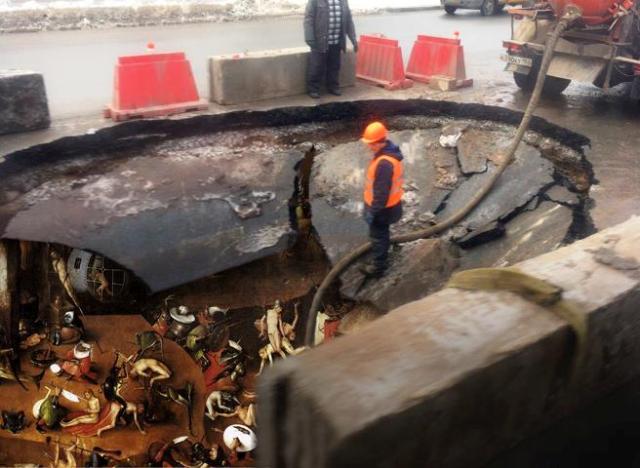 На улице Интернациональной ушла под землю Лада Калина, и ее так и не нашли. Через несколько дней под землю попытался уйти кусок асфальта на Первомайской. Событие вызвало шквал фотожаб разной степени упоротости, где провалы вели то в миры Босха, то на другие планеты, хотя жители Черниковки понимают, что ничего, кроме дверей в ад, у них появиться не может.