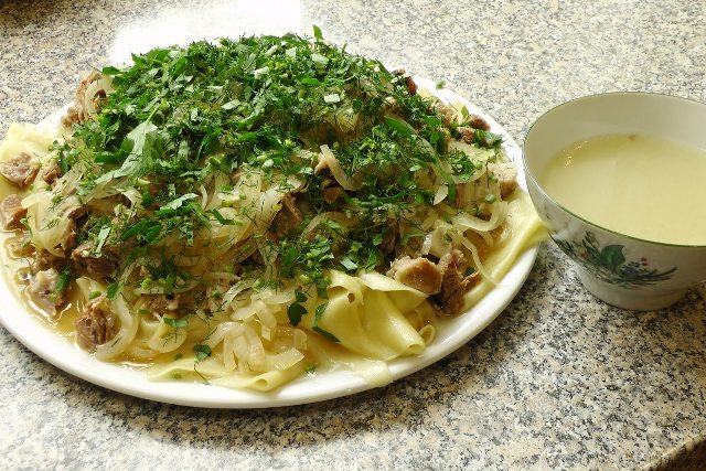 Здесь Угра Ош - куриный суп с домашней лапшой, молодой морковью и фрикадельками за 250 руб. и тукмас из птицы - суп из деревенского цыпленка с домашней лапшой и овощами всего за 200 руб. Быстро приведут в чувства, заставят увидеть реальность, как она есть.