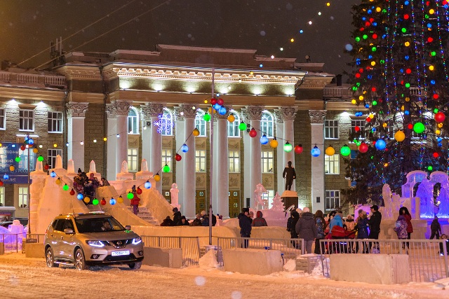1 кроссовер Nissan X-Trail, пятнадцатого года, на нем мы поехали по всем локациям, пробираясь через снежные горы, заносы и прочие фундаментальные решения городской администрации.
