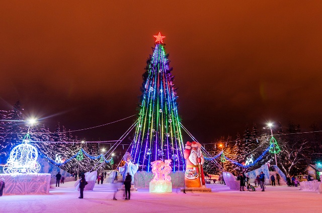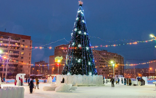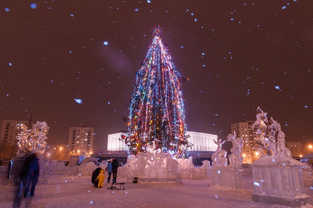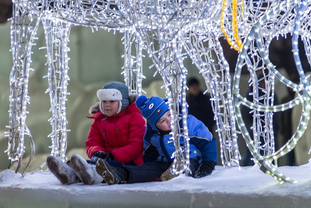 Друзья, даже огромный ледяной кит, который красит детские камзолы в яростный синий, является предметом юной любви. Что уж говорить о многочисленных петухах, Дедушке Морозе, Снегурке и прочей ледяной живности, на которую можно залезть с меньшими стараниями, попозировать в родительский смартфон или просто сломать себе голову. Но можно ли назвать елочку на Дворце Спорта украшением города. Ну, нет.