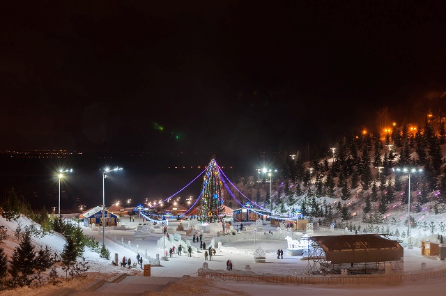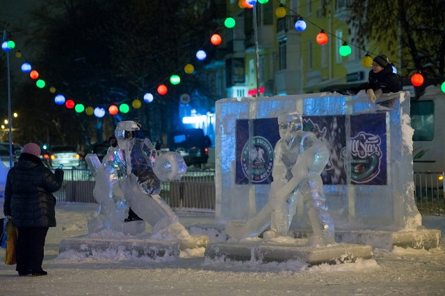 Сделано с любовью и вниманием — например, ледяные фигуры по мотивам башкирских сказок «Шурале», «Лиса и журавль». В преддверии Кубка звезд есть ледяные хоккеисты с дырками вместо лиц и довольно узнаваемый герб Черниковки с мечетью, нефтяными вышками и раскрытой книгой. Горка одна большая, на ней людно, горка для малышей ростом со среднего уфимца.