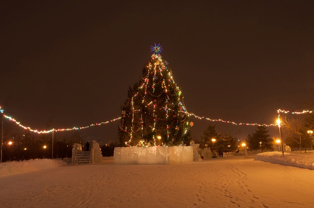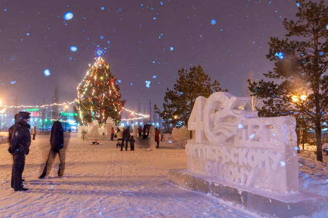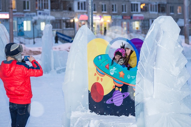 На пятачке в точке пересечения бульвара Баландина и улицы Мушникова встречает разухабистой «Червоной рутой» главная елка Инорса. Изо льда вырезаны огромные буквы УМПО, есть ледяные самолетики, по которым можно лазить и фанерные летательные аппараты для фотографирования с прорезями для лица.