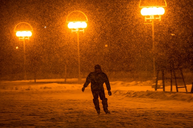 На площади много саней, есть маленький поезд, целый табун коней и пони, которые устало жуют предложенные детьми кусочки хлеба и украшают снег дымящимися яблоками. Людям можно перекусить, купив стаканчик с кофе и блинчиками, благо тут пять домиков с едой, а рядом несколько ресторанов, планетарий и колесо обозрения.