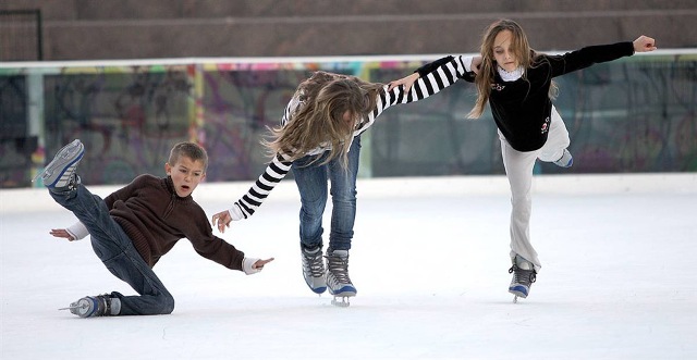 Детям до 6 лет выход на лед бесплатно, прокат коньков 50 руб.