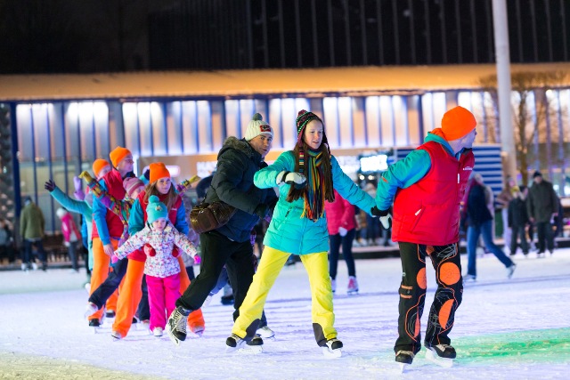 Каток работает ежедневно с 11:00 до 23:00. В пятницу и субботу до полуночи.