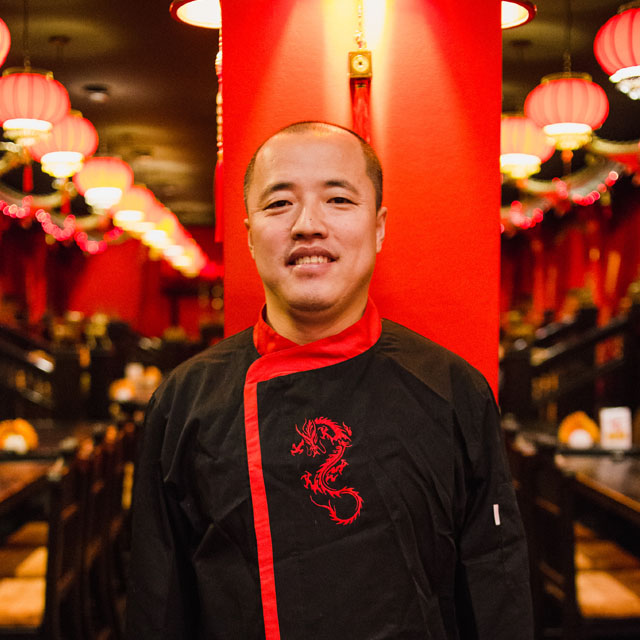 Насыщенно красные стены, позолота, тёмное дерево. Вы будто оказываетесь в китайском дворе при каком-нибудь храме, есть ощущение небольшой улочки, оградки, крыши, плотные шторы с позолотой. Очень интимно и даже эротично из-за этого красного цвета, в который облачено практически всё. Каждый стол огорожен текстилем, так что вы оказываетесь в небольшой комнатке и можете полностью закрыться от внешнего мира. Меню формата А4 с фотографиями блюд, с подробным описанием ингредиентов.
