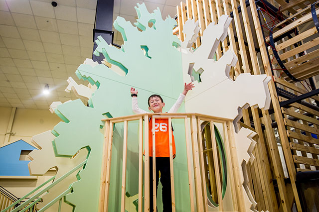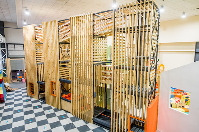 На самом деле, крутых штук, которые там собраны, намного больше. Я выделила только то, что меня впечатлило больше всего. Вот ещё, например, десятая крутая штука – трёхэтажный лабиринт под самый потолок для умных и находчивых. Он изготовлен из натурального дерева и напомнил мне какие-то лабиринты из Гарри Поттера или Алисы в Стране чудес. Лесенки, трубы, лазы, тупики, канаты – чего в ней только нет. Можно забраться под самый потолок и там спрятаться, типа в собственном штабике на приличной высоте. Была бы мальчишкой лет десяти – вообще оттуда бы не вылезала.