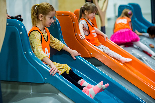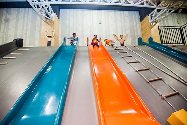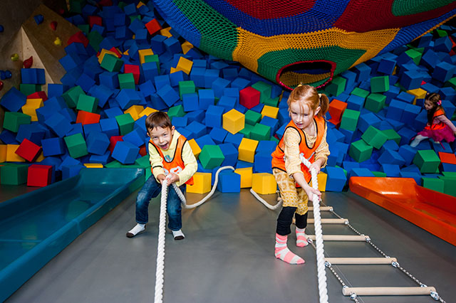Седьмая крутая штука – собственные многометровые горки. С них я скатилась пару раз сама, потом в обнимку с дочкой. Приземляешься в бассейн с поролоновыми кубами. Ими ещё классно кидаться и пулять ими из гигантских рогаток. Летишь метров пять по гладкой поверхности. Это в зоне для детей постарше, у малышей свои маленькие горки. Подниматься обратно на горку можно тремя способами: карабкаясь по канату, по верёвочной или обычной лестнице. Отличная альтернатива уроку физкультуры или фитнесу для мамы. Кстати, в «Йети» можно проходить со своими детьми за доплату или оставлять их «йетевским» педагогам на полном доверии. По моим наблюдениям, они активно играют с детьми, устраивают какие-то командные игры, вовлекают детей в интерактив и общение друг с другом в лучших традициях пионервожатых. Симпатичные и адекватные молодые люди.