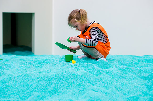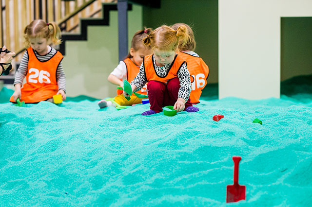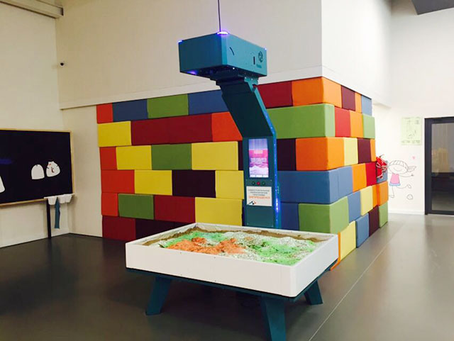Четвёртая крутая штука – настоящий мокрый а-ля из советских песочниц песок, на который проецируются всякие картинки. Помните те ощущения из глубокого детства, когда сидишь в песочнице после дождя? Он становится густым и тяжёлым, крупинка к крупинке, отлично лепится и копается, пахнет по-особому. По лицам детей, которые окружили песочницу, было видно, насколько они вовлечены и сосредоточены – неподдельный интерес к познанию, развитие ощущенческих навыков, песокотерапия! Мира пальчиками рыла ямку, девочка строила горку, прихлопывая ладошками, мальчик возводил китайскую стену. Планшеты, «Фиксики», мультики? Не, не слышали!