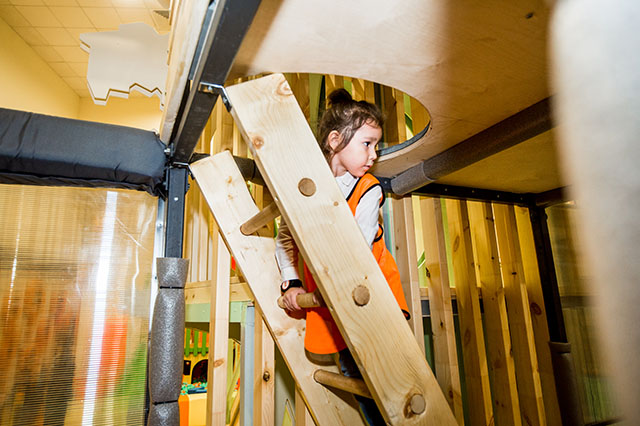 И да, я хочу сказать отдельно про цвет. Вы ведь знаете, что развитие хорошего вкуса и чувствование цвета у ребенка возможно лишь через натуральные цвета, встречаемые в самой природе. Так вот, в «Йети» об этом тоже знают! И в зоне для малышей от 1,5 до 5 лет используются естественные, сдержанные, натуральные цвета – древесина, нежно-зелёный, светло-оранжевый, экологически-жёлтый. Никаких кричащих и давящих на психику цветов, «красный вырви-глаз», «тошнотворно-синий», «бячно-зелёный» и «нарочито-жёлтый», в которые так любят выкрашивать китайские детские игрушки или городки. В зоне для детей постарше присутствуют яркие цвета, но в сочетании всё это гармонирует и перекликается, ничего не бесит и не раздражает.